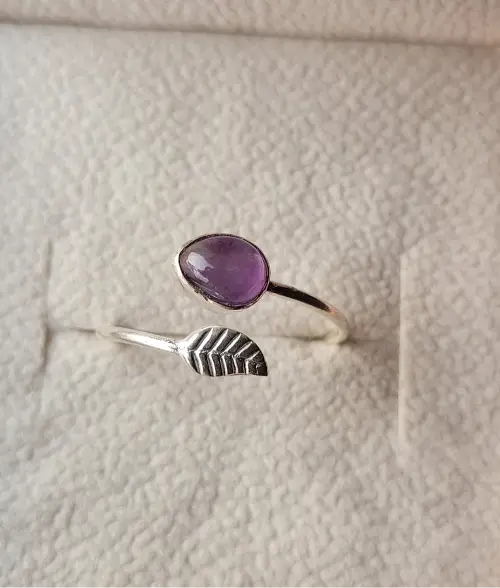 Leaf Amethyst Adjustable Ring